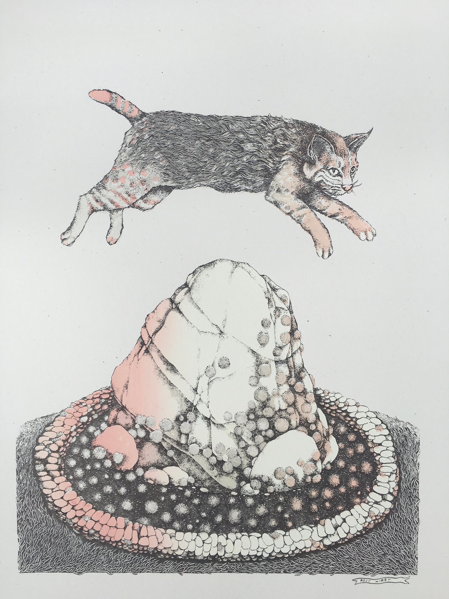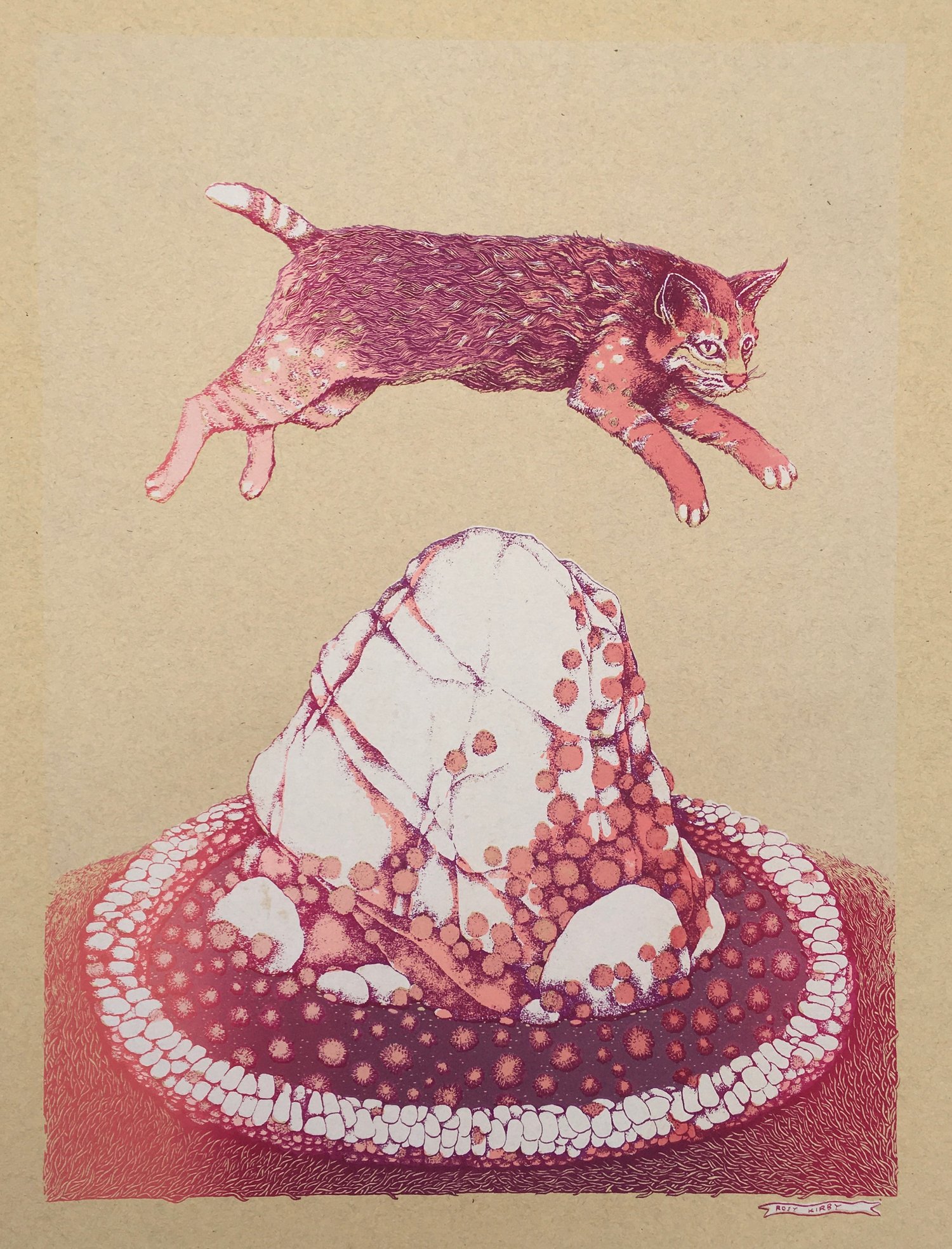 with lichens, and an old time livestock fence of field rocks to protect the space